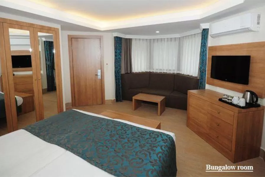 Hotel raspolaže sa 620 soba od toga 111 soba u glavnoj zgradi i 509 soba u klub delu, koje su raspoređene po kompleksu i okružene bujnim zelenilom. U kompleksu se nalaze četiri panoramska lifta – uspinjače, što u mnogome olakšava pristup do soba u klubu. Sve sobe poseduju: klimu, ketler sa izborom kafe i čaja, LCD TV sa satelitskim kanalima, sef, mini-bar (uključen u cenu, puni se samo na dan dolaska) i fen. Sobe u glavnoj zgradi su renovirane pred sezonu 2014, nešto su veće po površini, imaju balkon i pločice na podu, a sobe u klubu su delom sa tepihom, delom sa pločicama i imaju francuski balkon.