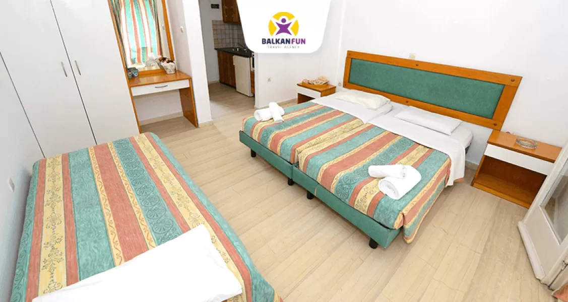 OLIVE GARDEN nalazi se u mirnom delu Kavosa, udaljen petnaestak minuta hoda od centralne ulice i desetak minuta od plaže. Vila raspolaže trokrevetnim sobama. Svaka soba je dosta komforna i klasično grčki opremljena sa: čajnom kuhinjom, frižiderom, kupatilom, terasom.