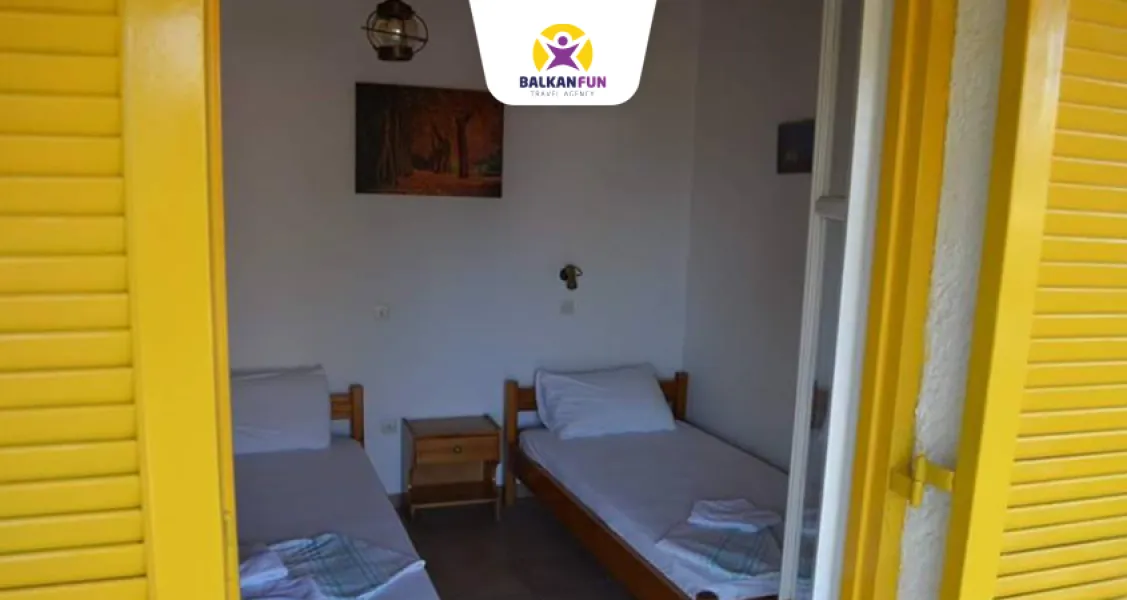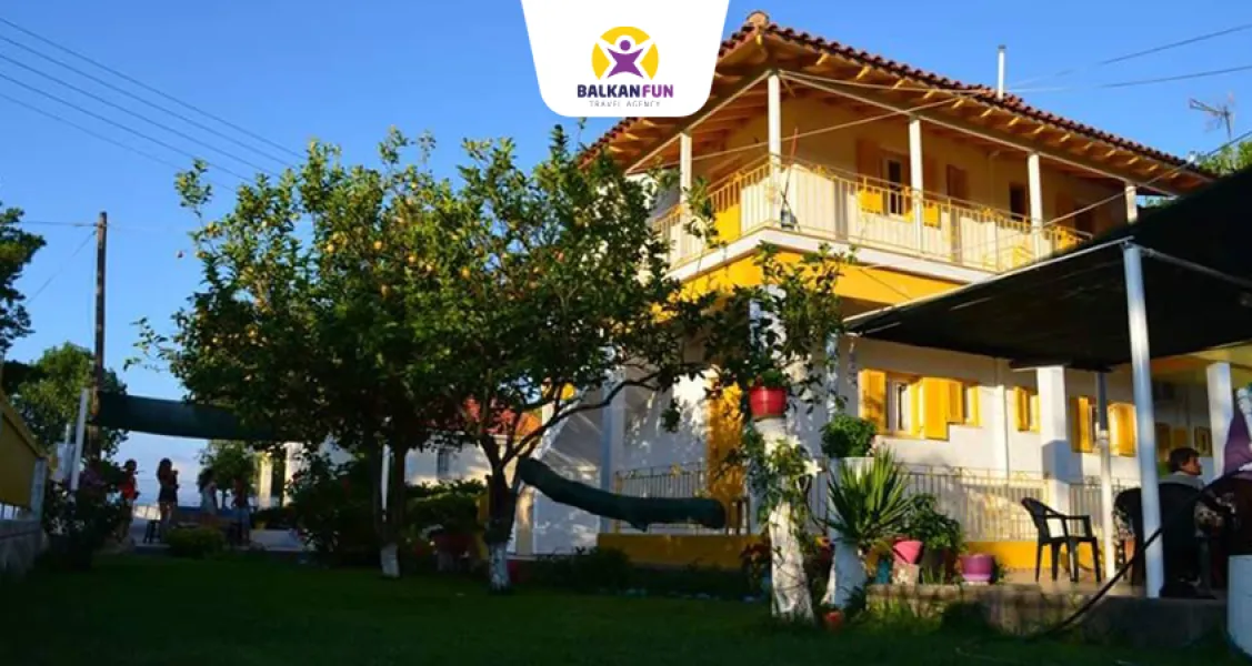 YELLOW HOUSE vila se nalazi na 20 metara od plaže u mirnom delu Kavosa, sa udaljenošću od centra grada 500 metara. Vila ima veliko uređeno dvorište, sa dosta zelenila i baštenskim garniturama, gde može da se uživa u miru, suncu i moru. Takođe ima mesta za parkiranje, za goste koji dolaze sopstvenim prevozom. Vila raspolaže studio aparmanima: za dve, tri, četiri i pet osoba. Svaki studio apartman je dosta komforan i klasično grčki opremljen sa: čajnom kuhinjom, frižiderom, kupatilom, TV, terasom i klima uređajem (doplaćuje se na licu mesta).